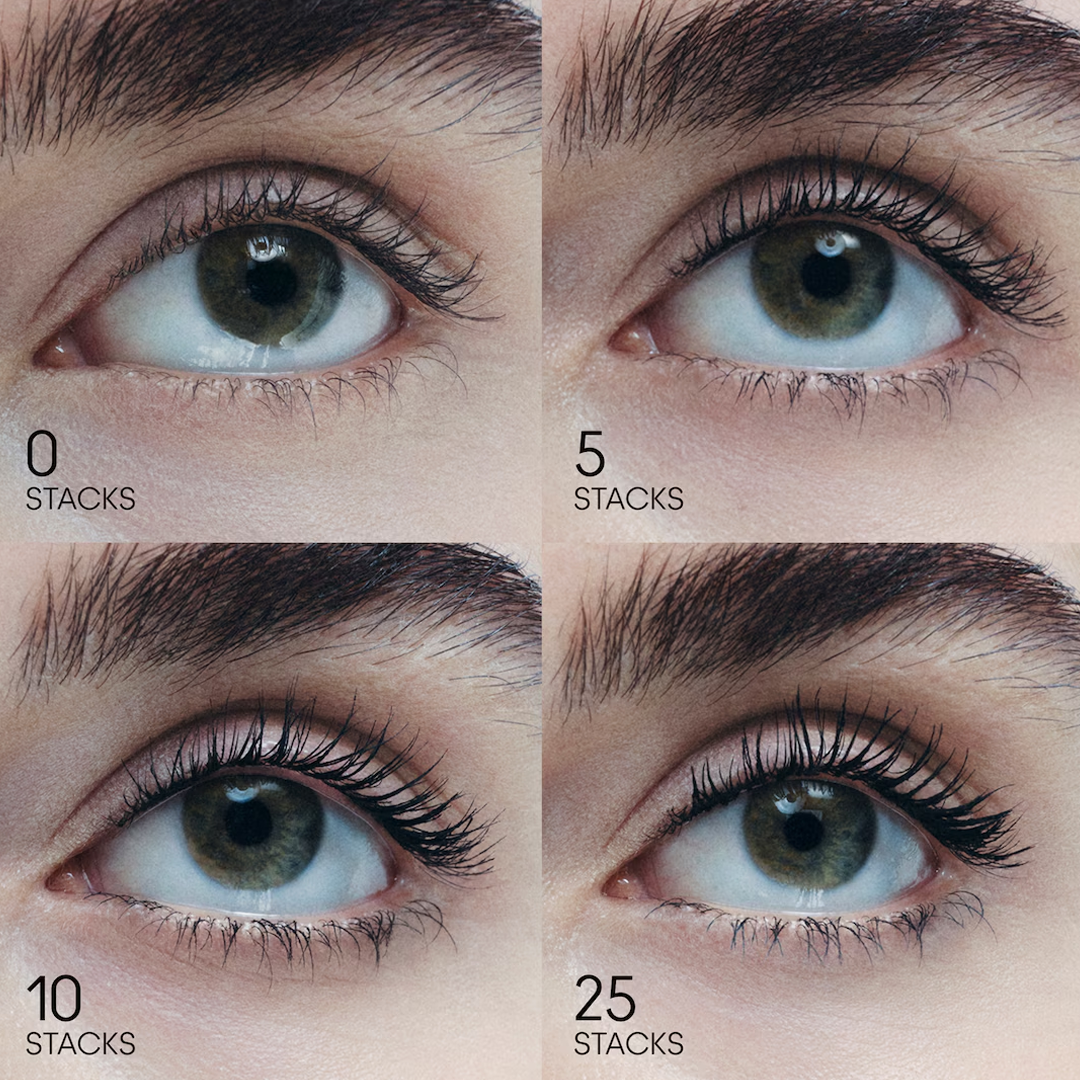 M·A·CStack Mascara ofrece volumen y longitud infinitamente modulables con una fórmula ligera, resistente a grumos y personalizable. Disponible en dos versiones: Mega Brush, ideal para pestañas largas o superiores, y Micro Brush, perfecto para pestañas cortas o inferiores.